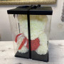На фото большой мишка из белых роз 40 см. В составе: . Все цветы свежие и ароматные, букет красиво оформлен и отлично подходит для подарка. Доступна доставка цветов или самовывоз.